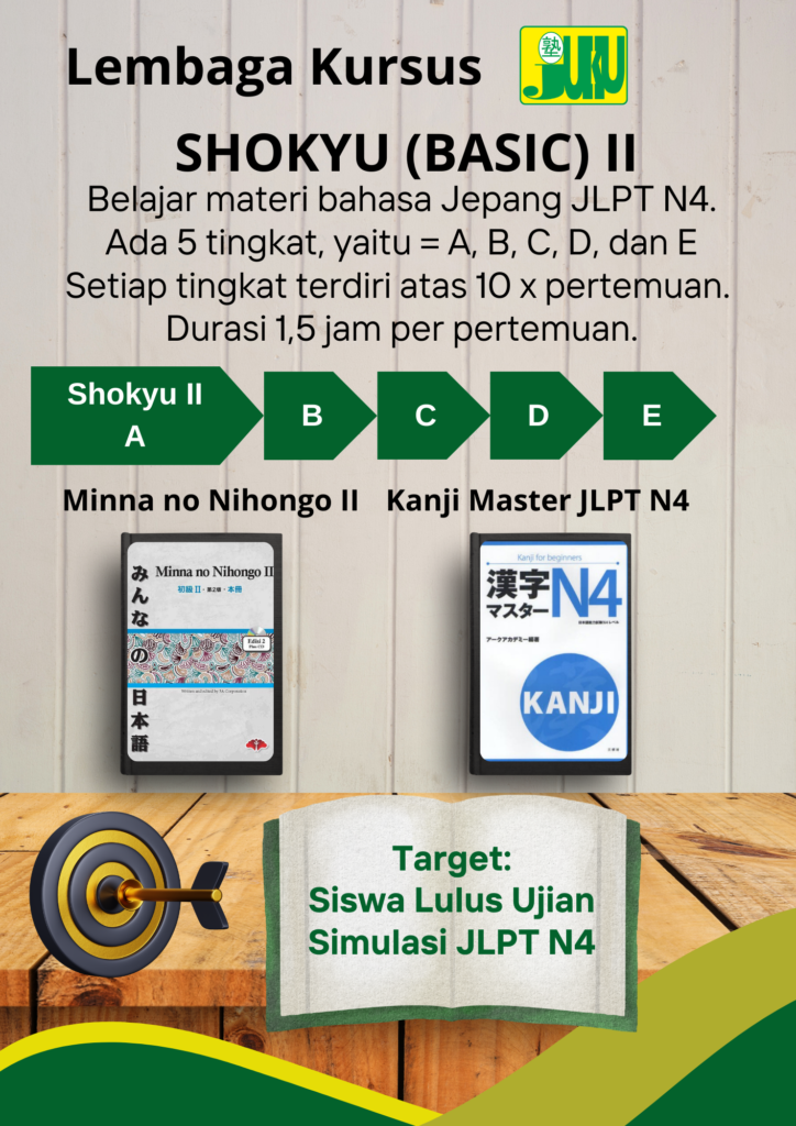 Kursus bahasa Jepang Persiapan JLPT N4/JFT A2 untuk SMA, Kuliah, dan Umum.